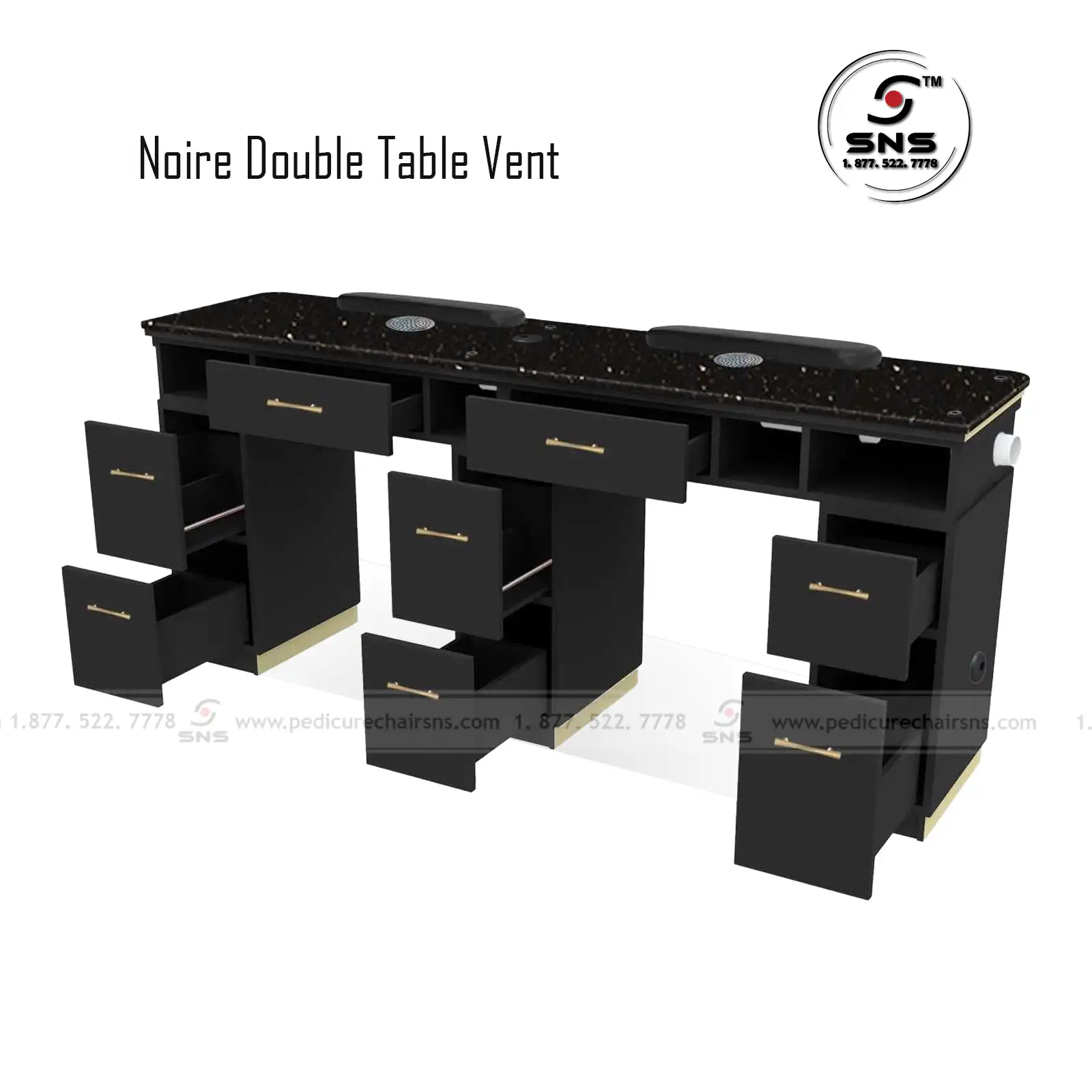 The Noire Collection has twice the variety and space of any of our other premium nail salon furniture.